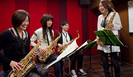 レッスンは、音の出し方や運指、音符の読み方といった基本のエクササイズからスタート。また、「自由にアドリブが吹いてみたい!」という期待にもお応え出来るよう、基本的なコードやスケール、ジャズ特有の吹き方や「ノリ」、初歩のアドリブなども 初級の段階からご経験いただけます。ステップアップしていくにつれて、より本格的なアドリブにも挑戦していきます。